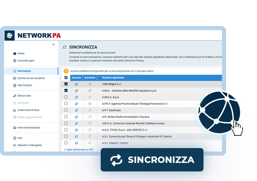 Grazie alla funzione “Sincronizza”, le informazioni inserite nel profilo aziendale possono essere replicate automaticamente sugli Albi fornitori delle PA registrate su NetworkPA.